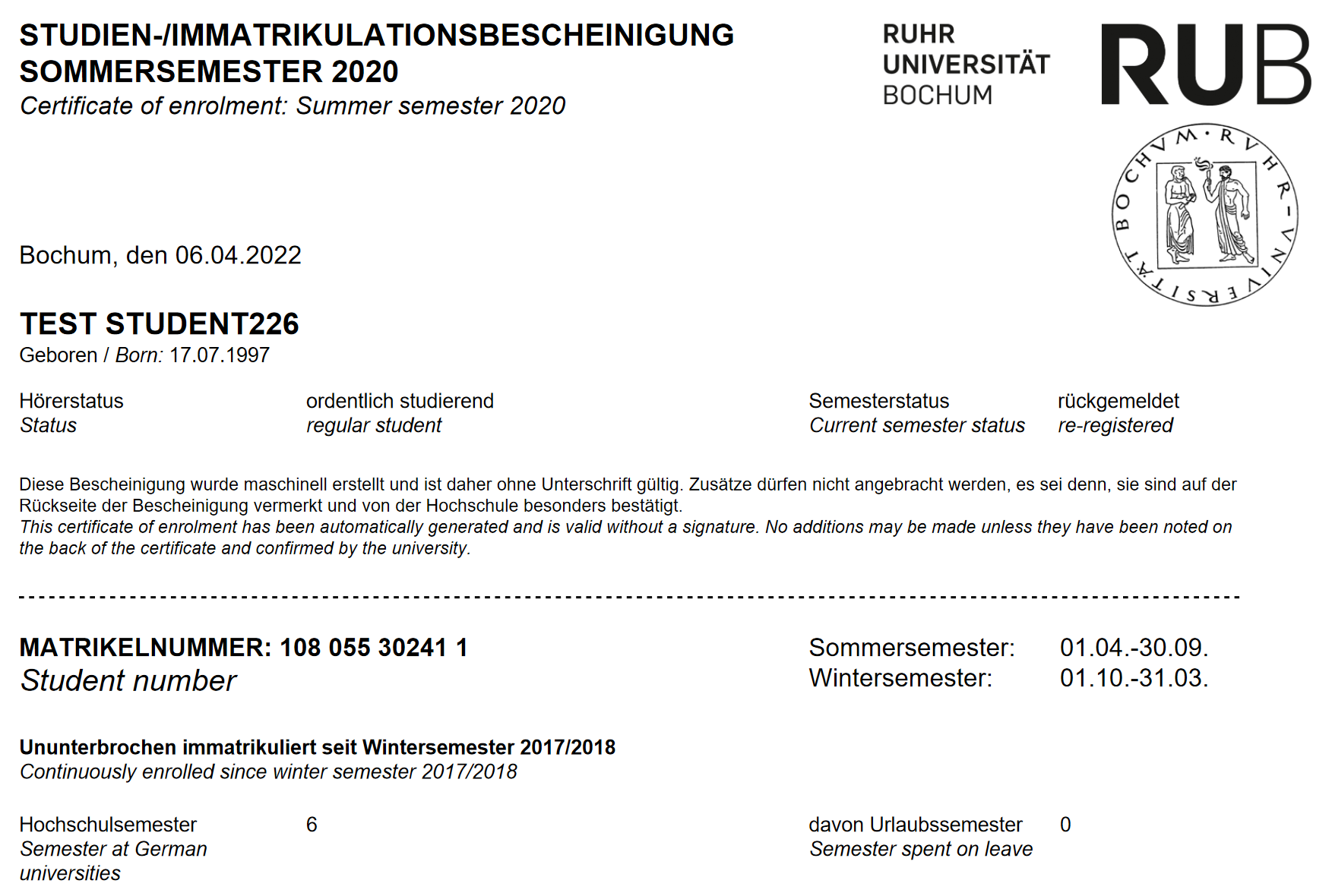 Im RUB eCampus-Portal können Sie Ihre Studienbescheinigung bequem von zuhause oder auf dem Campus ausdrucken.